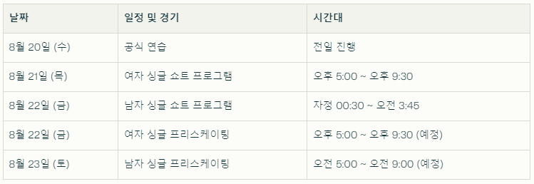 | 2025 피겨 주니어 그랑프리 2차 대회: 중계 경기일정 시간 (0) | 2025.08.27 |